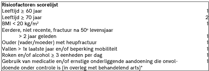 Bij een cliënt ≥ 60 jaar zónder recente fractuur (≤ 2 jaar geleden) en zónder gebruik van glucocorticoïden: