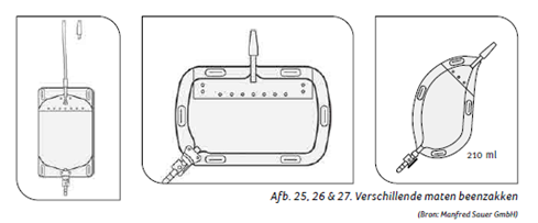 Urineopvangzakken zijn in verschillende maten verkrijgbaar. Cliënten kunnen ervoor kiezen om overdag een kleine opvangzak en ‘s nachts een grote opvangzak te gebruiken.