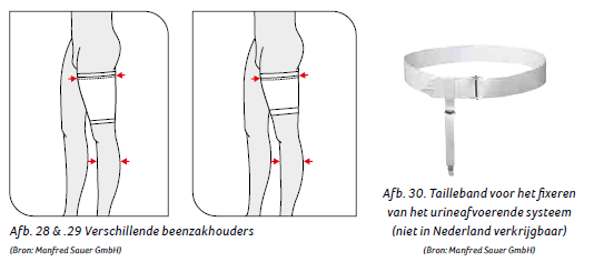 Het is belangrijk dat de beenzak of de beenzakhouder met tailleband zo bevestigd wordt dat de urine zonder problemen naar de urineopvangzak kan stromen.