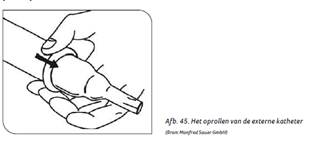 Een eendelige of een tweedelige externe katheter Of gekozen wordt voor een eendelige of een tweedelige externe katheter is een kwestie van persoonlijke voorkeur. De meeste cliënten geven, vanwege de betrouwbaarheid en het gebruiksgemak, de voorkeur aan een eendelig systeem. Een tweedelige externe katheter kan echter erg geschikt zijn voor cliënten bij wie de glans penis groter is dan de penisschacht, of voor cliënten die overgevoelig zijn geworden voor het kleefmateriaal in eendelige systemen. Kies in elk geval voor een externe katheter die gemakkelijk is aan te brengen, aangezien aanbrenggemak het vertrouwen van de cliënt vergroot.