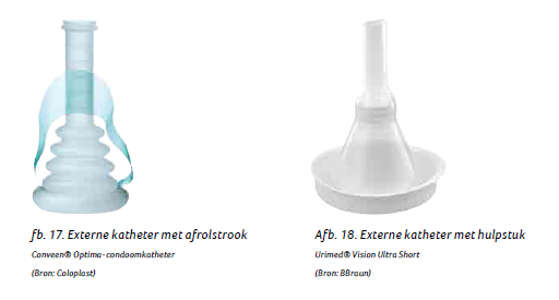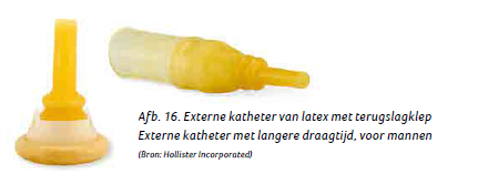 Bij mannen die grote hoeveelheden urine verliezen, kan gebruik van een externe katheter met terugslagklep handig zijn om kleefkrachtverlies en lekkage te voorkomen.